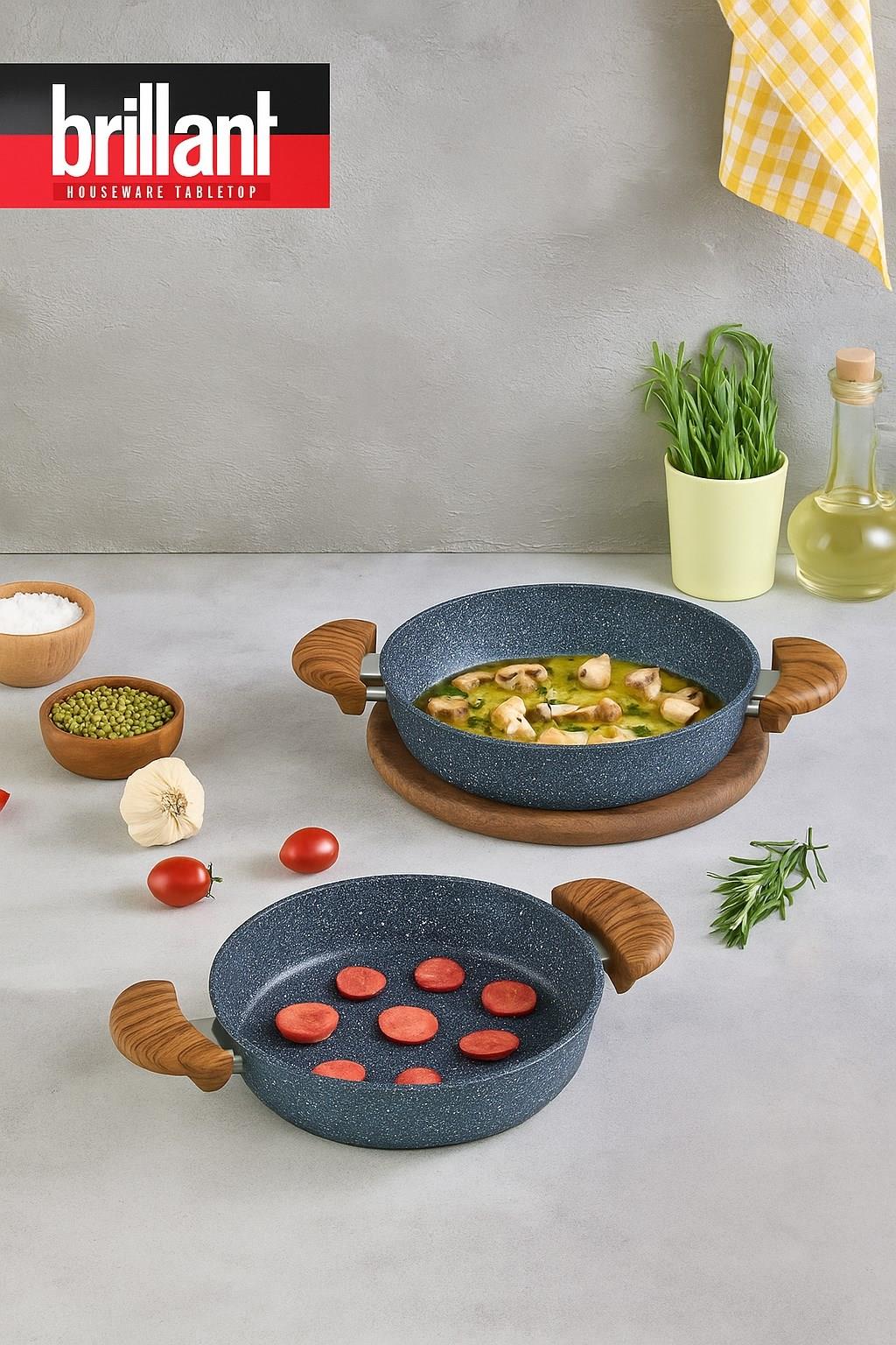Mutfakta kalite ve şıklığı bir arada sunan Alpha Bio Granit 2'li Sahan Seti, günlük yemeklerinizi hazırlarken sağlıklı ve konforlu kullanım sağlar. Yüksek dayanıklılığa sahip özel BIO GRANİT kaplama sayesinde yapışmaz yüzey sunar ve uzun ömürlü kullanım vadeder.