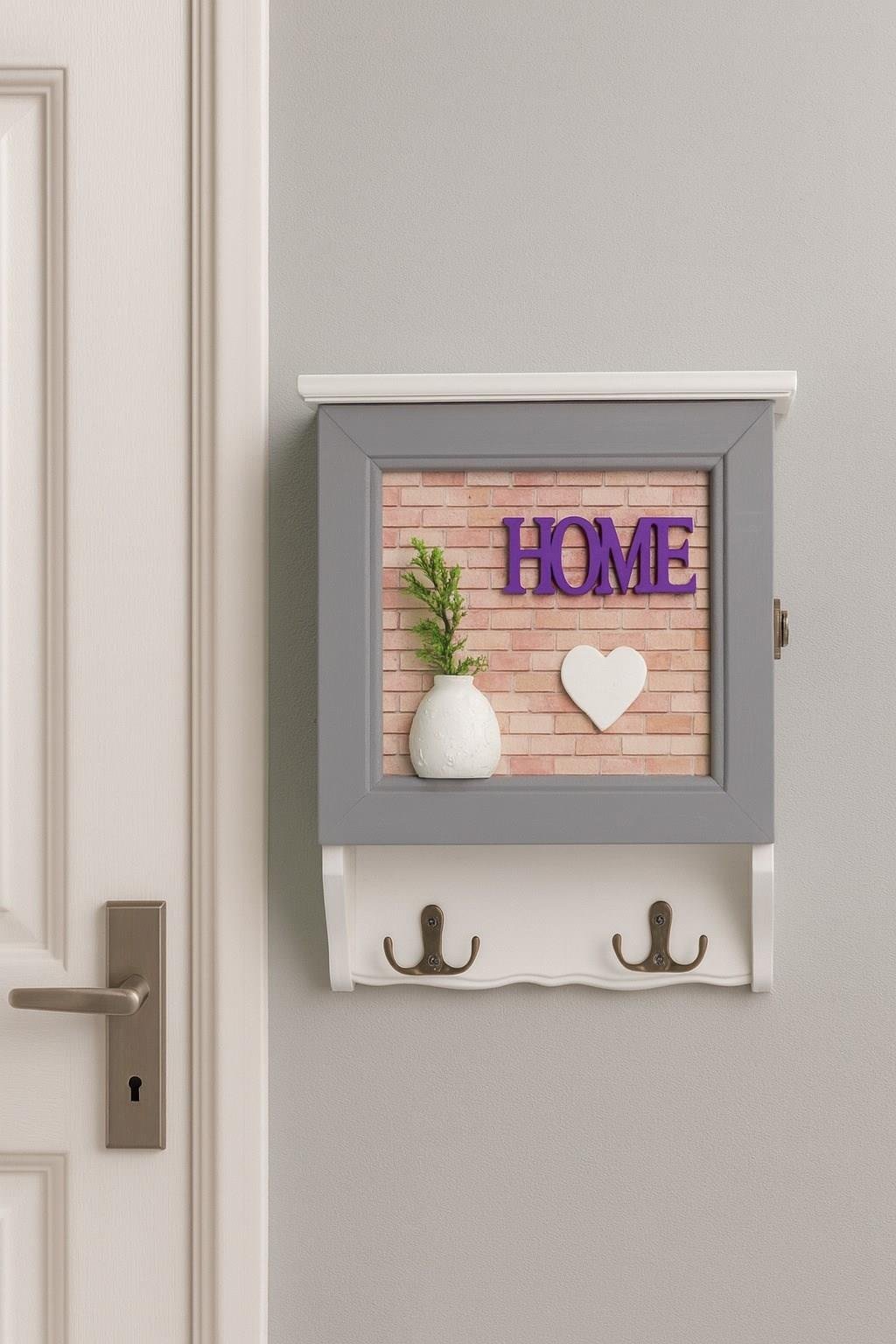 ✔️ Dekoratif Tasarım: Tuğla desenli arka plan, “Home” yazısı, kalp figürü ve minik vazo detayıyla şık bir görünüm sunar. ✔️ Fonksiyonel Kullanım: İç kısımda 6 adet askı aparatı, dış kısımda 4 adet metal kanca bulunur. ✔️ Dayanıklı Malzeme: Sağlam ahşap yapısıyla uzun ömürlü kullanım sağlar. ✔️ Kolay Montaj: Duvara monte edilerek ev, ofis veya yazlıklarda pratik kullanım imkânı verir.