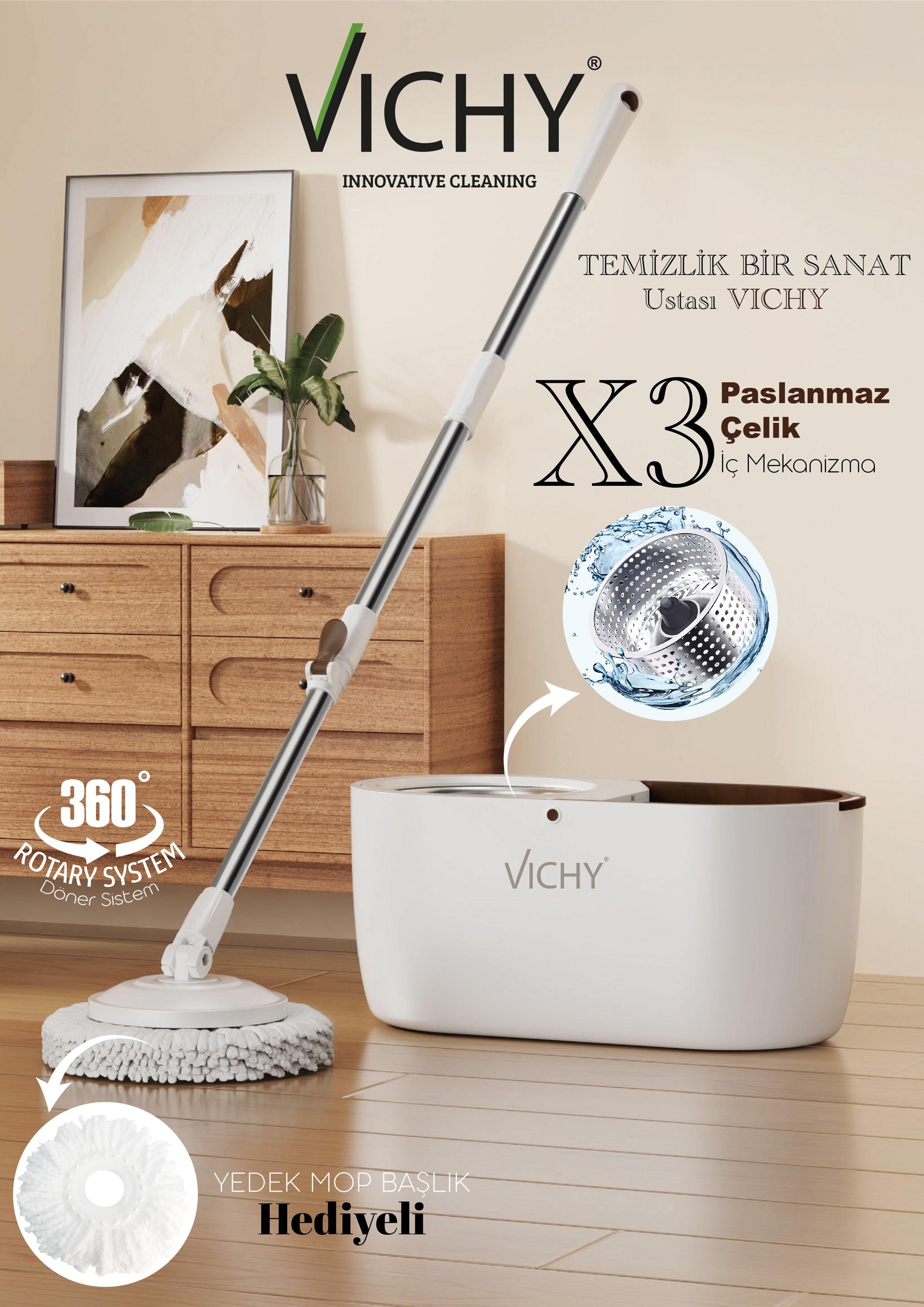 Mop Temizlik Seti ile evinizde, ofisinizde veya iş yerinizde hijyeni bir üst seviyeye taşıyın! Dayanıklı kova sistemi, 360° döner mop başlığı ve yüksek emici güce sahip mikrofiber mop bezi sayesinde zeminlerinizdeki kiri, tozu ve lekeleri kolayca temizleyebilirsiniz